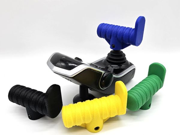 The first power wheelchair joystick knob was created for our nephew. He had arrived at our house to play when his mom realized his joystick knob on his power wheelchair had gone missing. Instead of ordering a new knob, Phil was able to create a custom joystick replacement knob in just a few hours. Since that day, our joystick offerings have expanded as we try to create unique knobs with personality and character in a variety of different textures, shapes, styles, and colors.